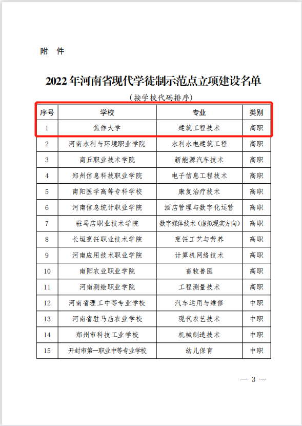 球王会体育官方网建筑工程技术专业获批2022年河南省现代学徒制示范点立项建设项目